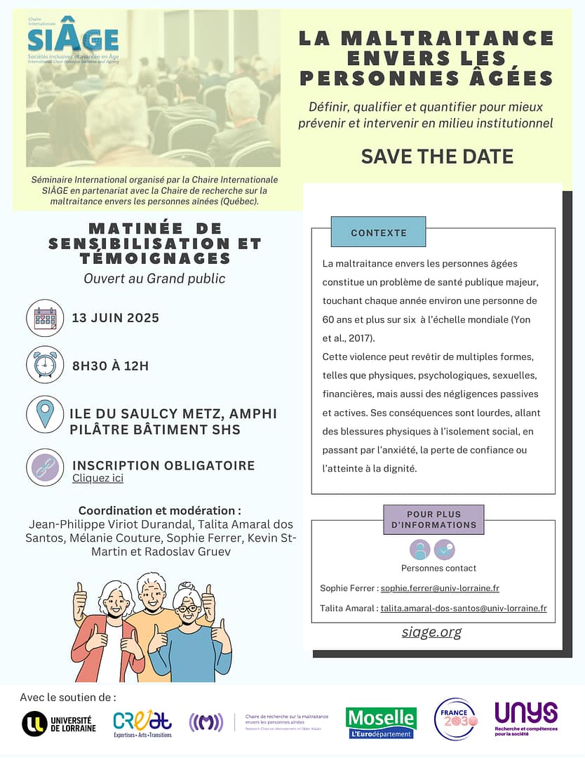Dans le cadre des activité de la Chaire Internationale SIÂGE » Sociétés Inclusives et Avancée en[…]